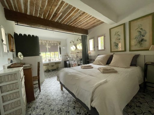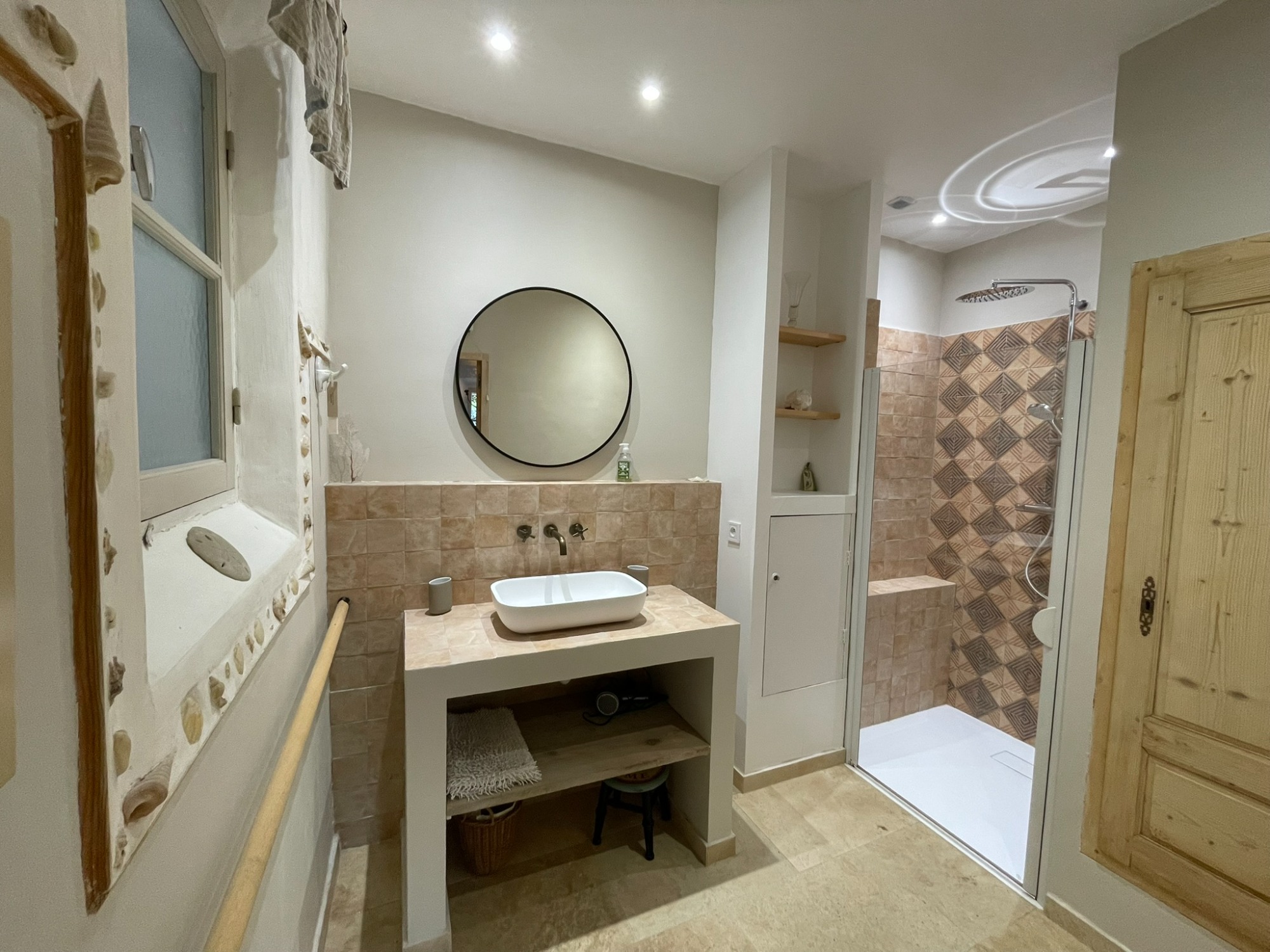 La maison (80 m²) comprend un séjour, cuisine ouverte (réfrigérateur, four, micro-ondes, évier, lave-vaisselle), une chambre avec un lit double (160 x 190) et coin télé, une chambre avec 2 lits simples, une salle d'eau (vasque + douche à l'italienne), wc séparé.